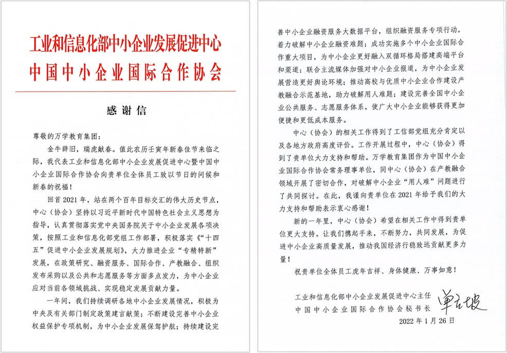 喜讯 | 教育部高校学生司给壹号娱乐集团和万学高管颁发了重磅感谢状